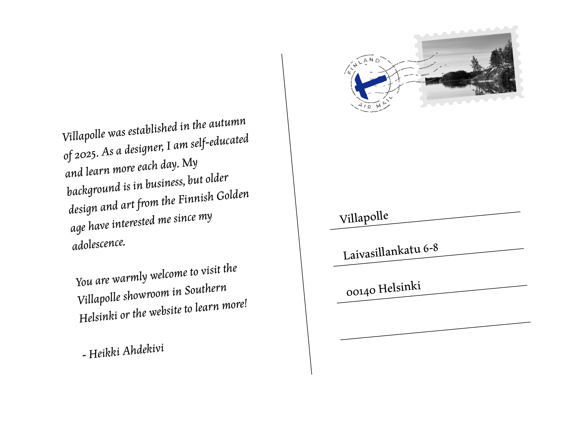 Showroom address: Laivasillankatu 6-8, 00140 Helsinki.